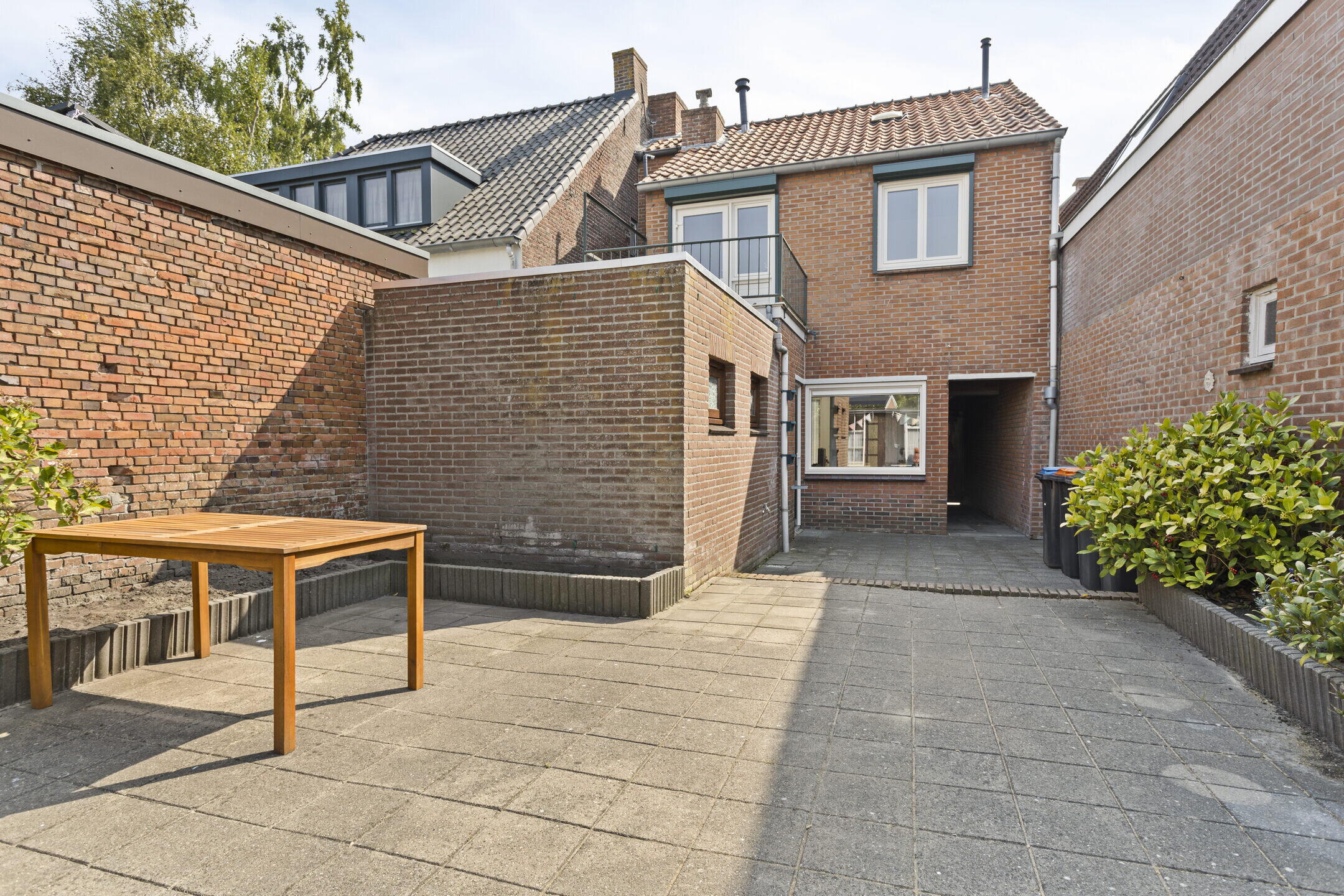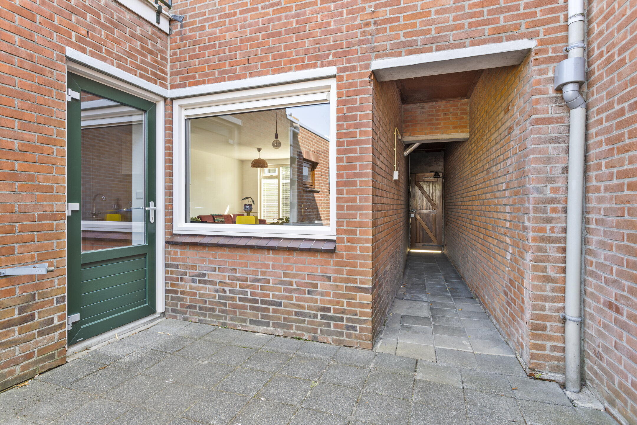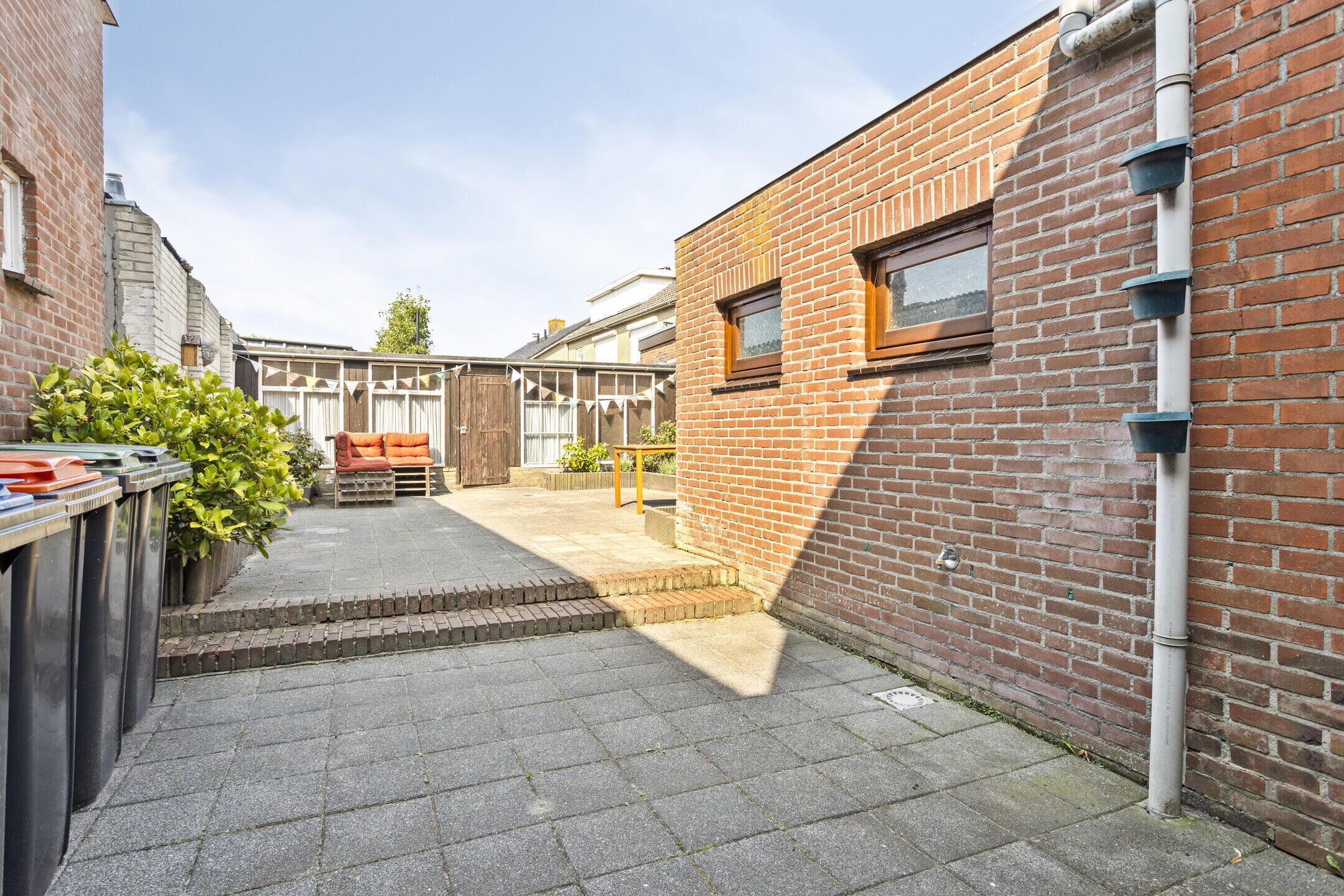 De achtertuin is een fijne plek om te vertoeven. Strak bestraat en ruim opgezet, waardoor je meerdere zithoeken kunt creëren. De borders met groen zorgen voor een gezellige en levendige uitstraling. Hier kun je zowel genieten van de zon als van het buitenleven.