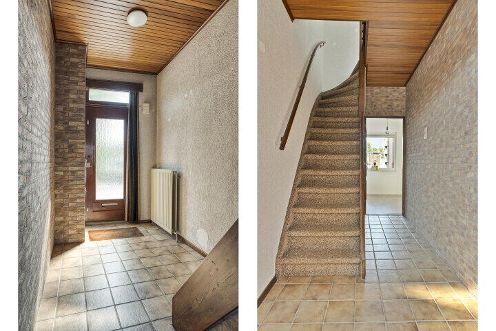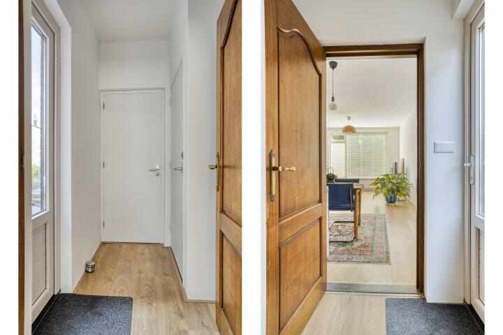 Via de eigen voordeur stap je de ruime hal binnen. Hier is genoeg plek om jassen en schoenen netjes op te bergen. De hal vormt een fijne eerste indruk en geeft toegang tot de verschillende vertrekken van de woning.